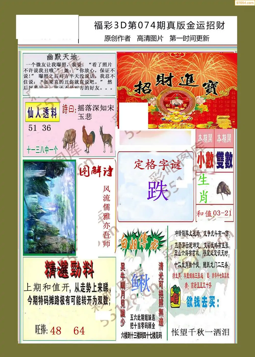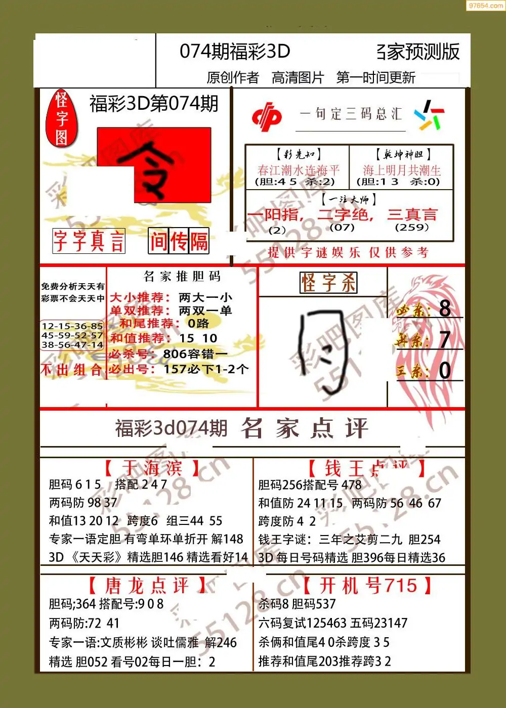 (3)2026074期3D预测总汇全图_福彩3d图谜字谜总汇