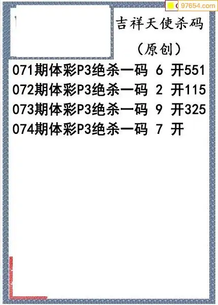 26年074期吉祥天使今日杀码图谜