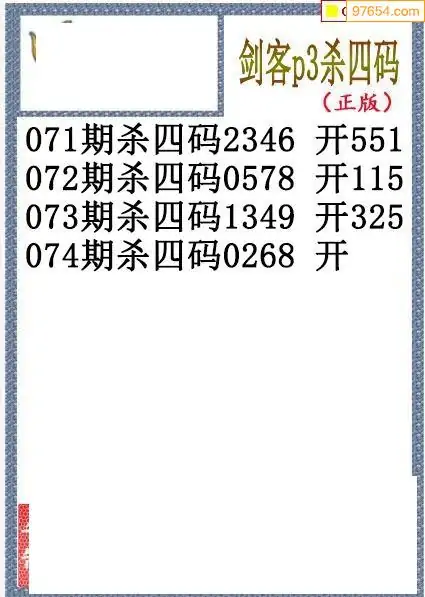26年074期排三剑客杀码图谜