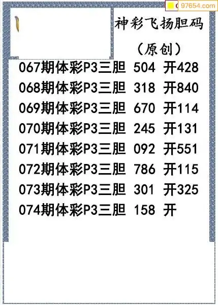 26074期神彩飞扬体彩P3三胆图谜
