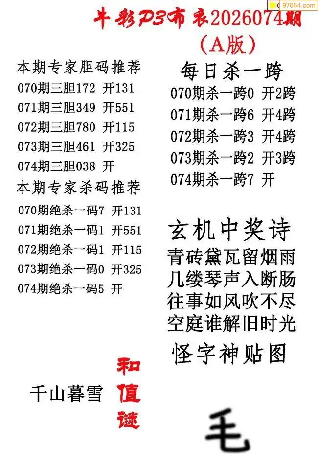 2026年074期北盟天机图+p3仙机图谜 _排三图谜专区
