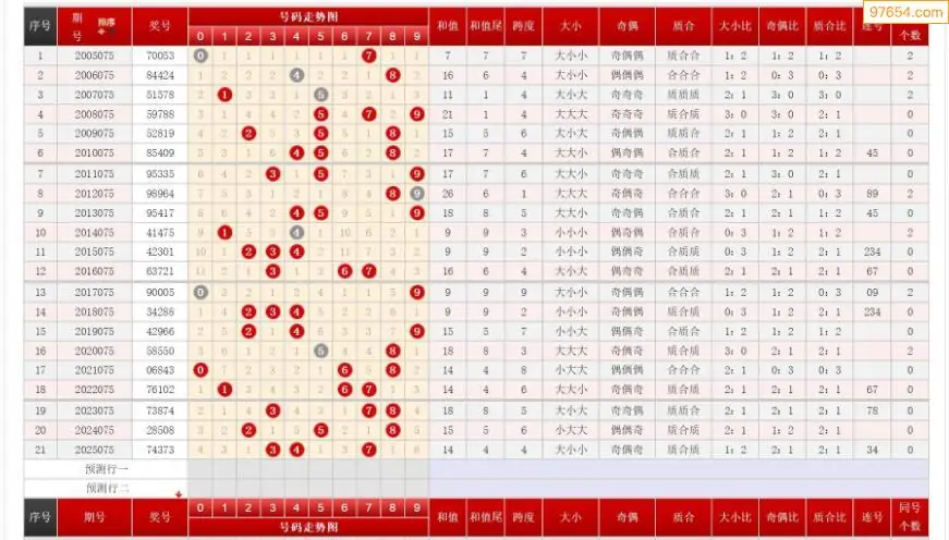 075期排列三历史号码对比图+数据走势分析