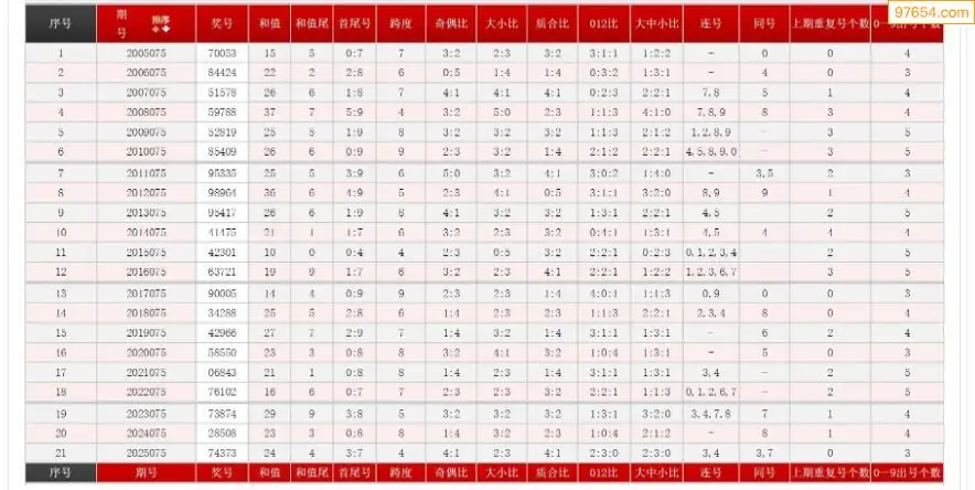 075期体彩P5历史同期对比图表+近期走势图分析