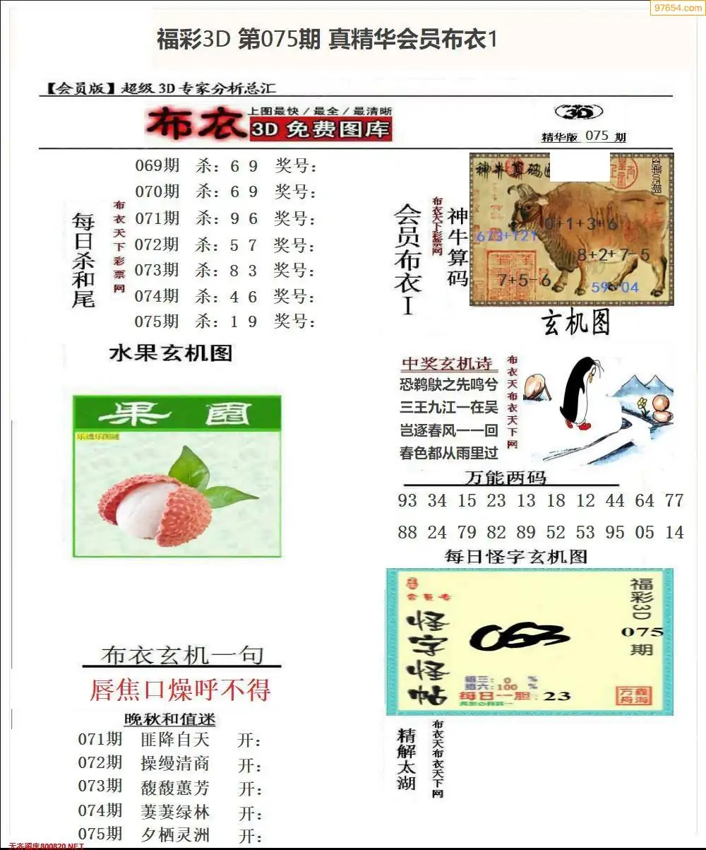 2026075期会员布衣3d图库
