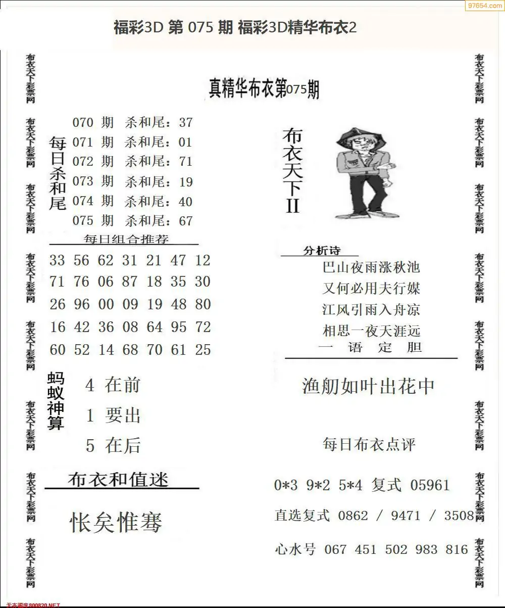 福彩075期3d真精华布衣+布衣早报(转载)