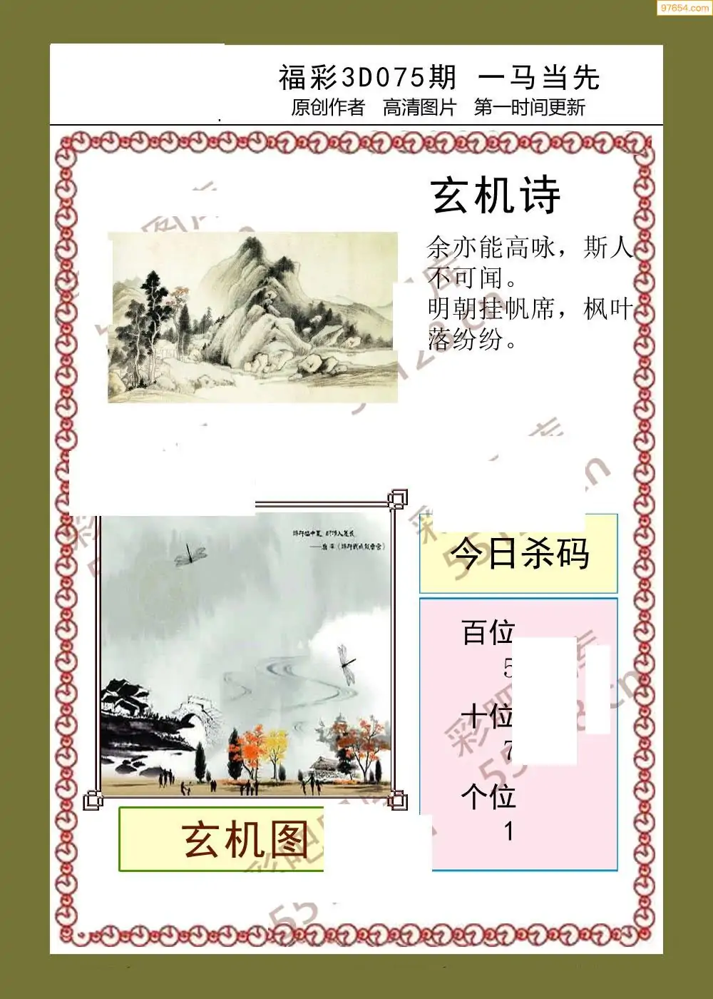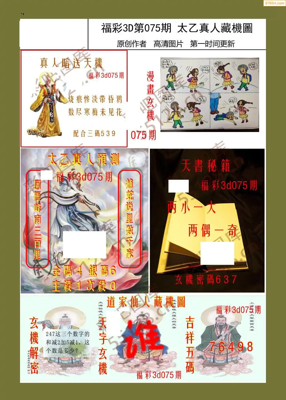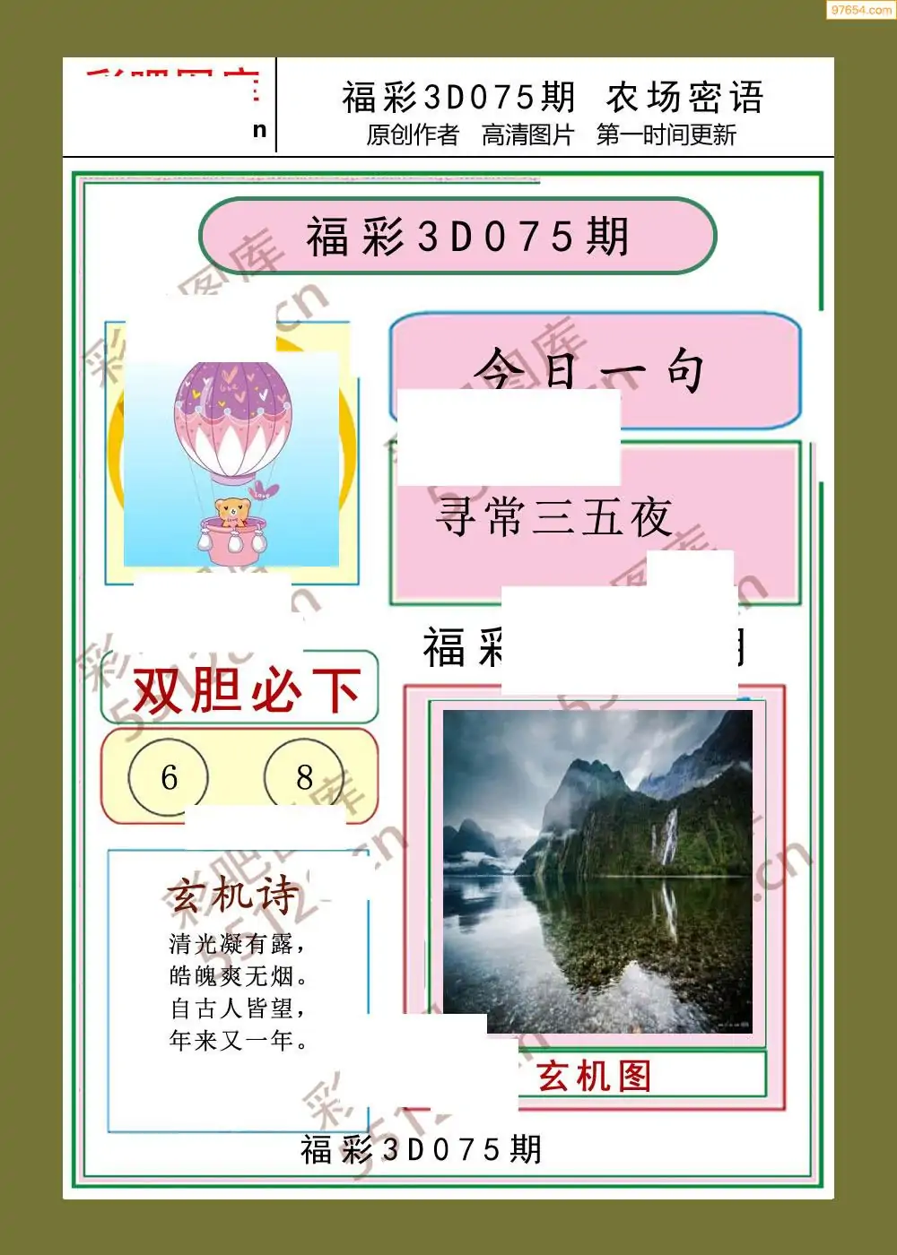 福彩3D075期天牛彩吧套图整合总汇