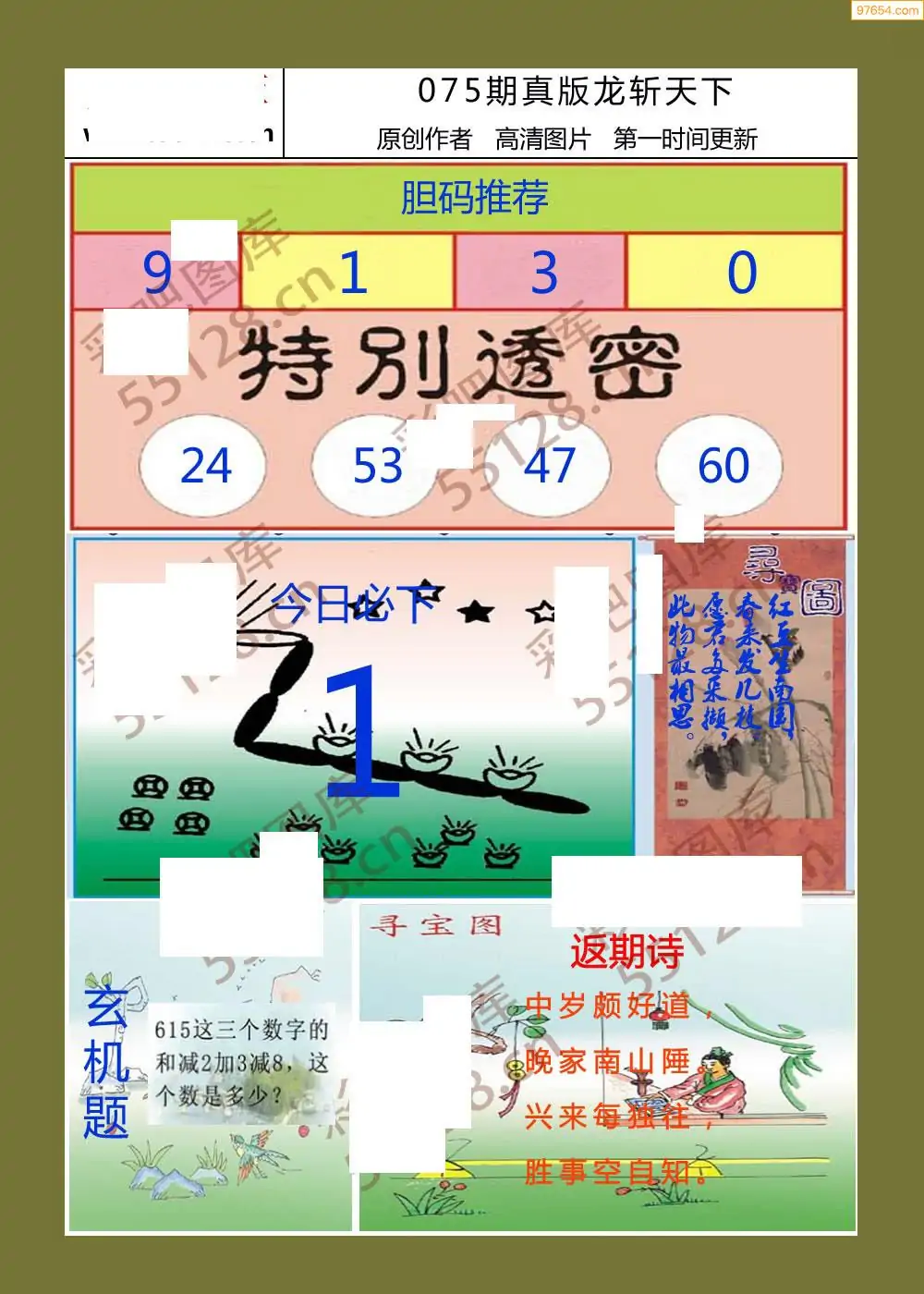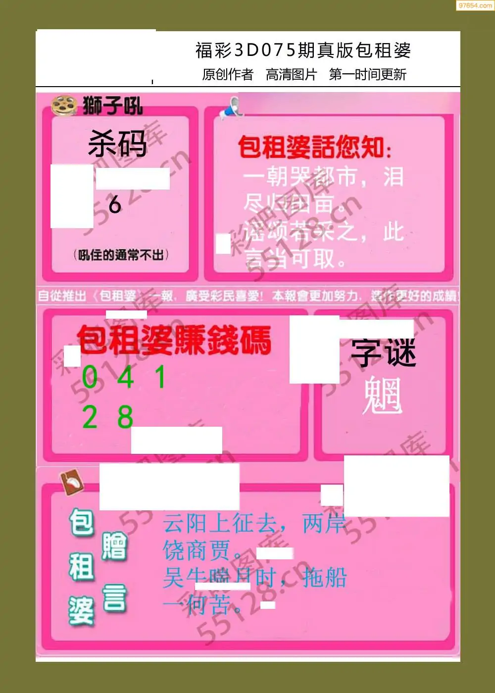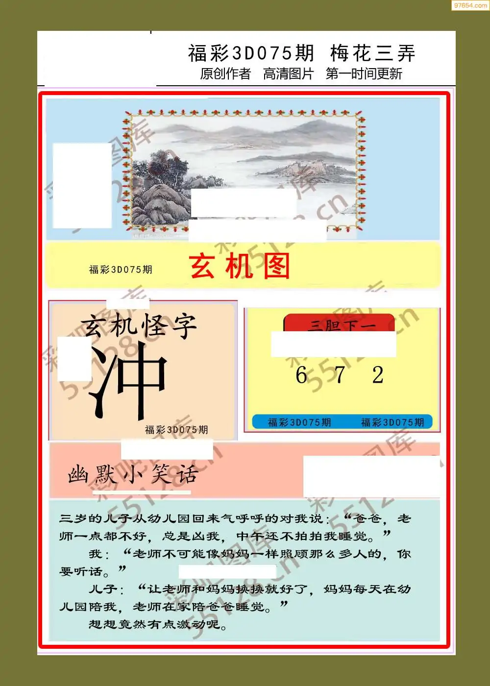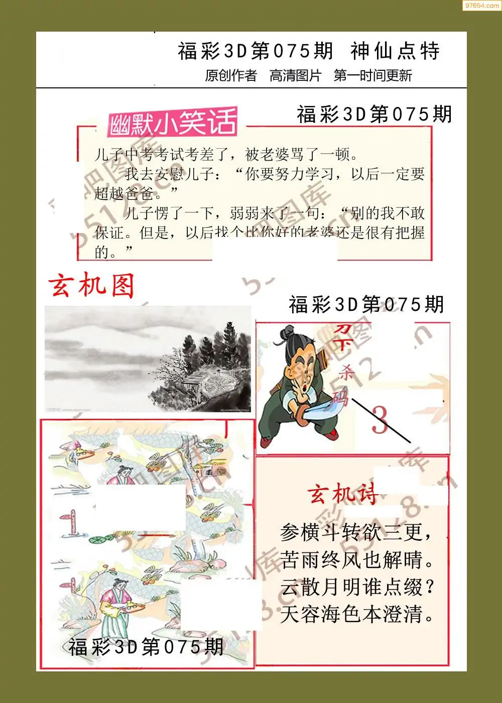 福彩3D075期天牛彩吧套图整合总汇