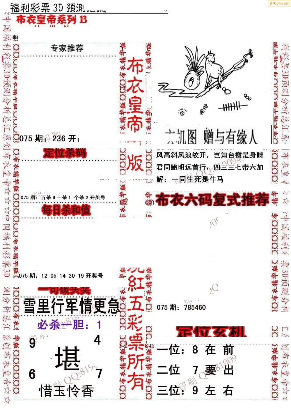 福彩075期3d真精华布衣+布衣早报(转载)