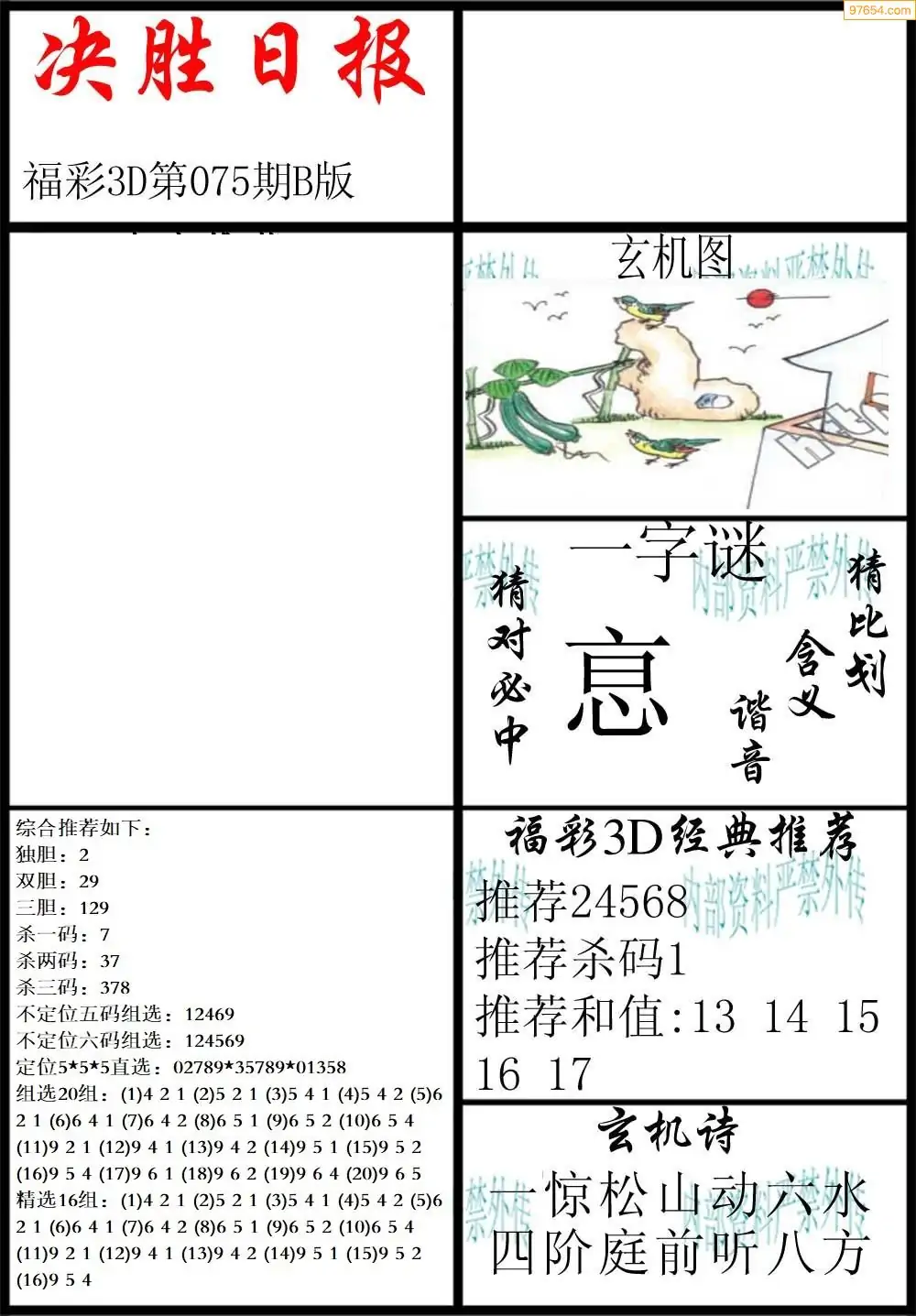 26075期3D天中原创预测字谜报