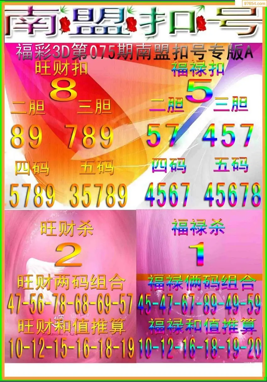 福彩3D075期天牛彩吧套图整合总汇