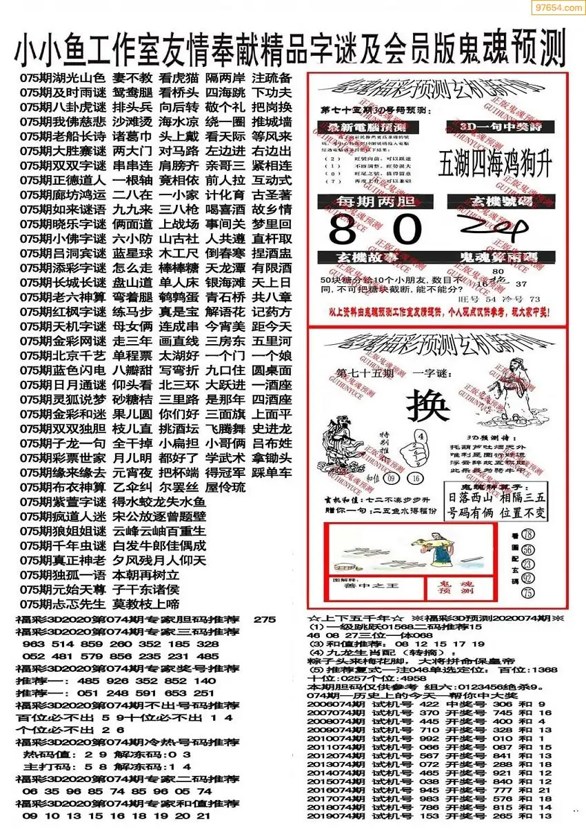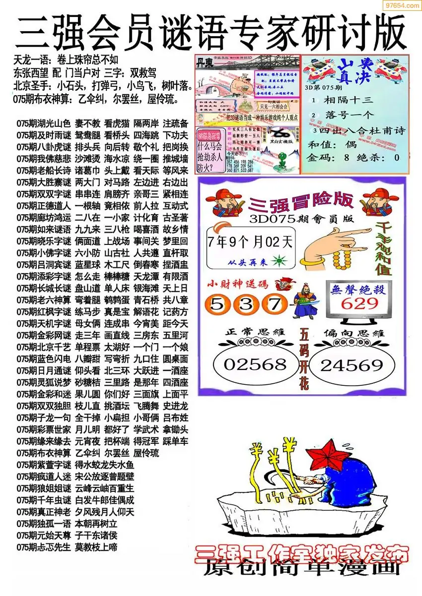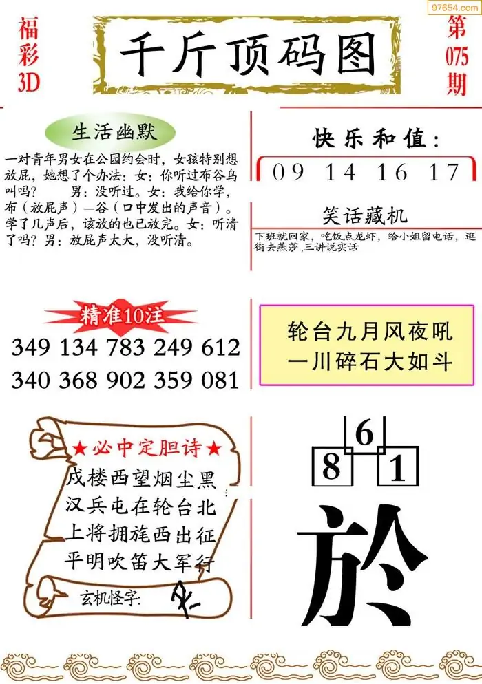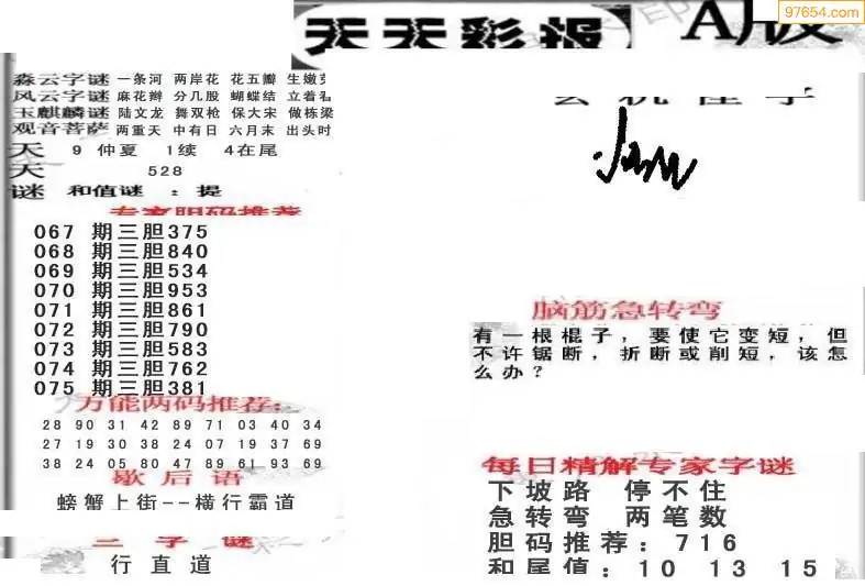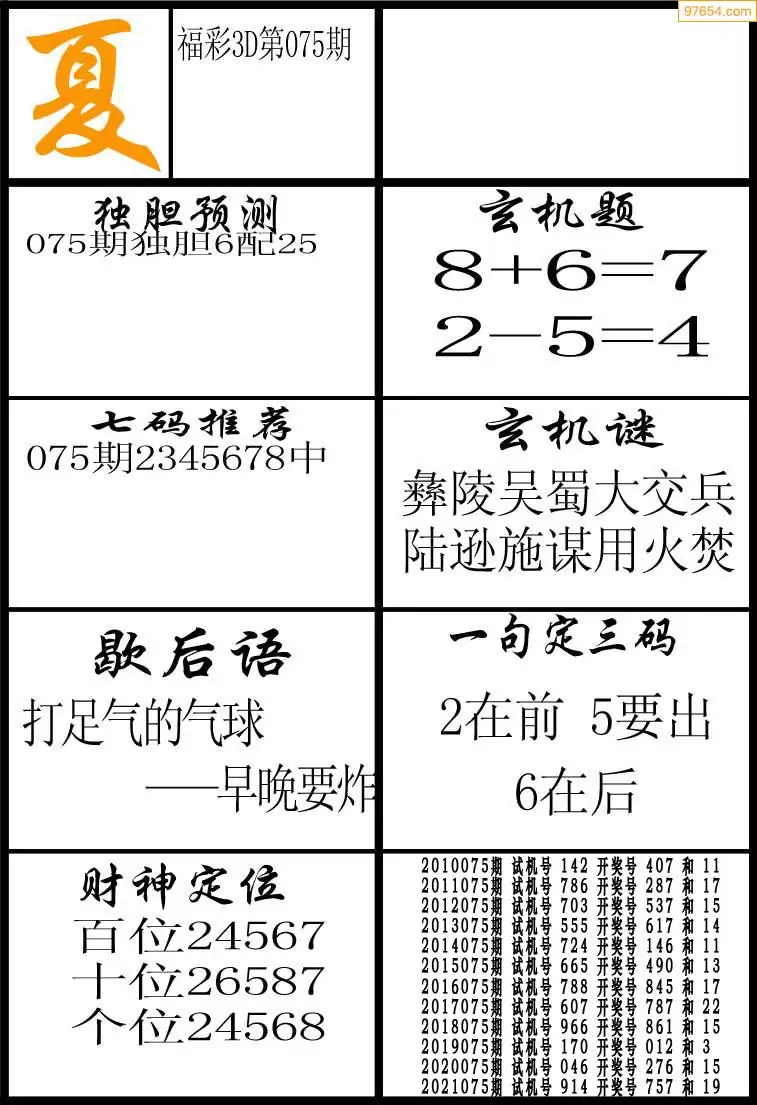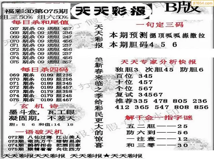 075期3D牛彩预测报+彩吧字谜报