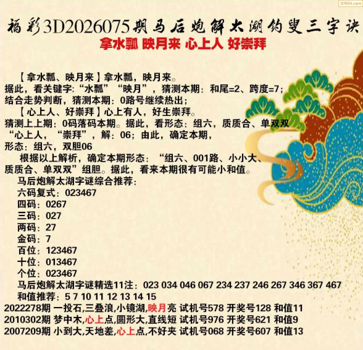 26075期福彩3d太湖钓叟三字诀历史汇总