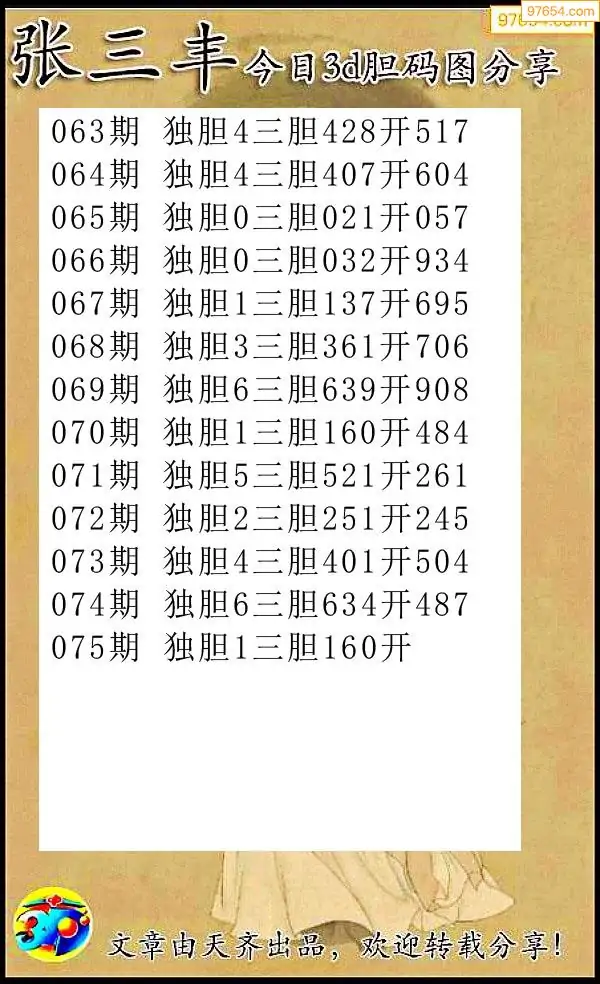 2026075期彩彩网3d原创图迷搜集(天中整理)