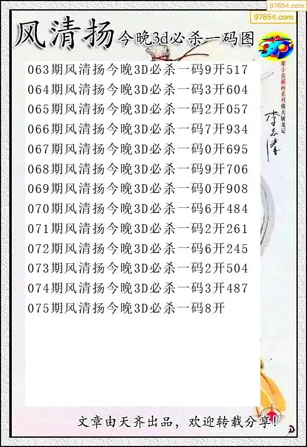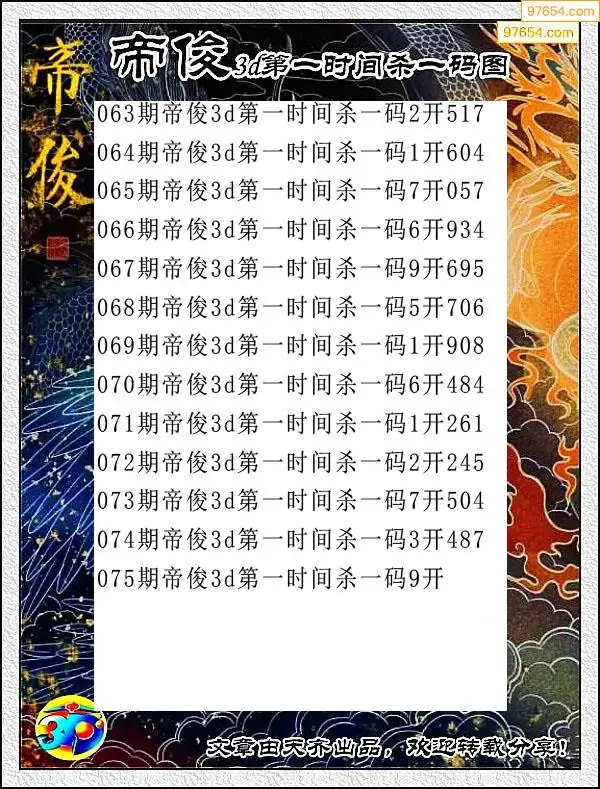 天齐网3d26年075期杀码图 杀:61