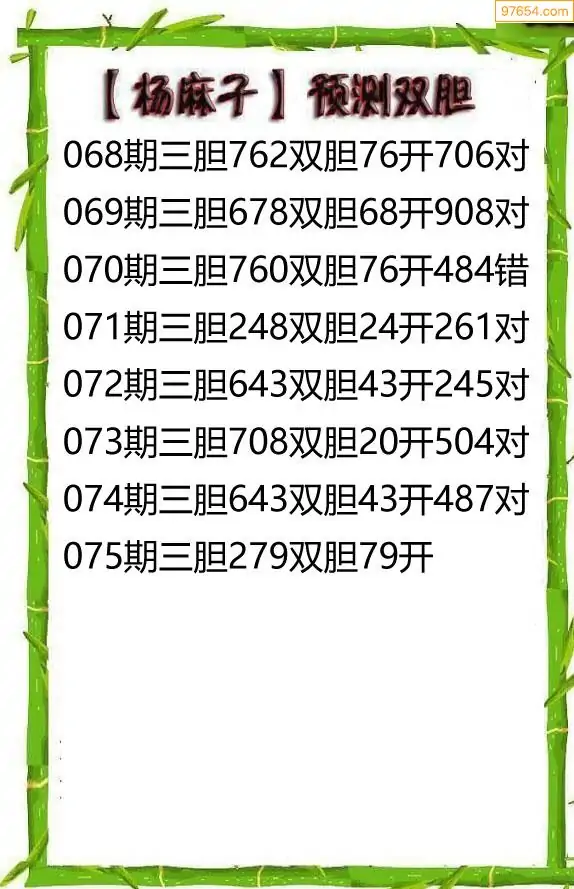 26075期杨麻子_福彩胆码计算方法