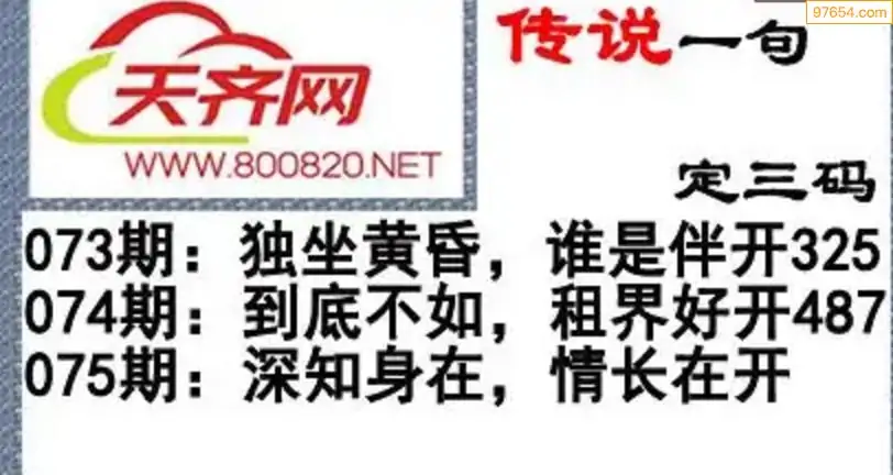 福彩3d26年075期字谜传说一句定三码