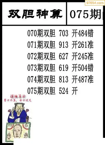 075期97654本站收集胆码出号预测