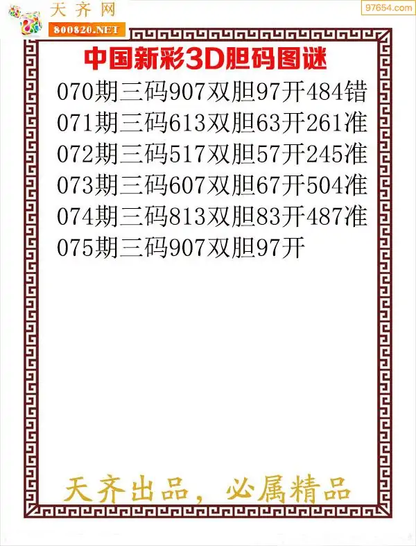 天齐网3d26年075期胆码图 胆:52