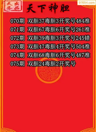 075期97654本站收集胆码出号预测