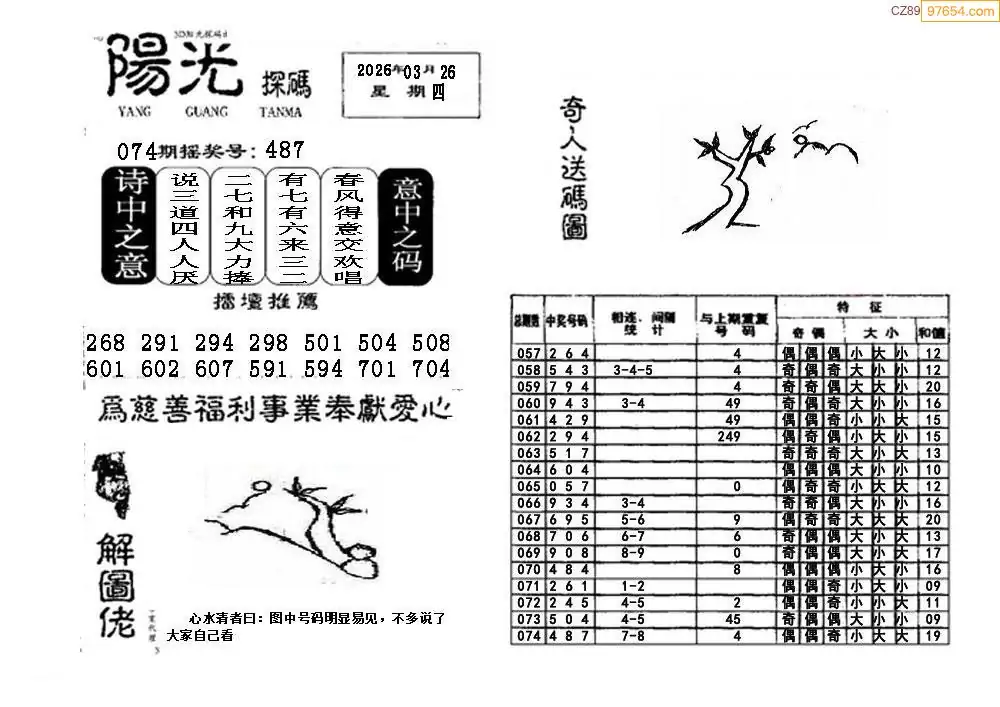 26年075期3d选号彩报图谜画谜