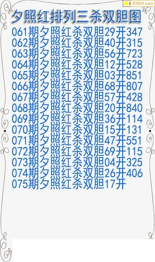 26年075期今天排三夕照红杀双胆