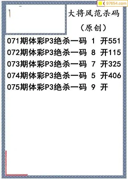 26年075期大将风范p3杀码体彩图谜