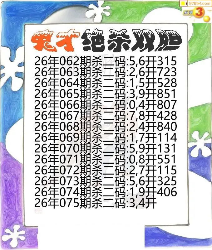 26年075期p3鬼才绝杀双胆图谜