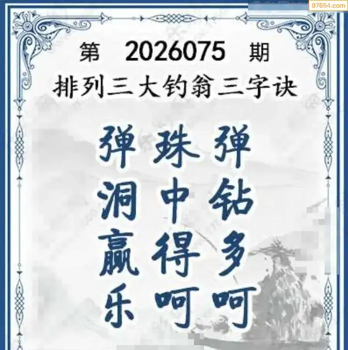 26年体彩p3第075期大钓翁三字诀