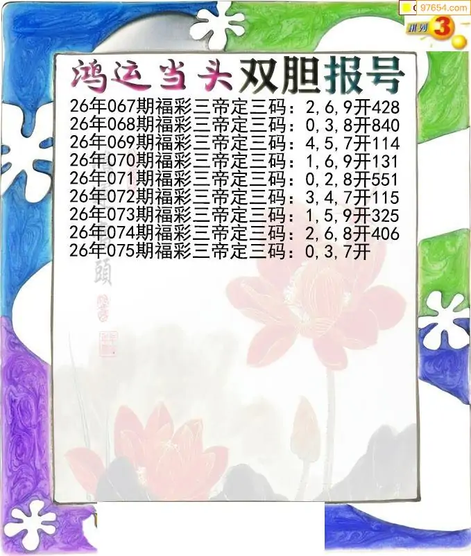 26075期鸿运当头双胆p3报号图