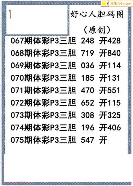 E族图075期体彩p3专家条件分析图谜_体彩图谜打印版