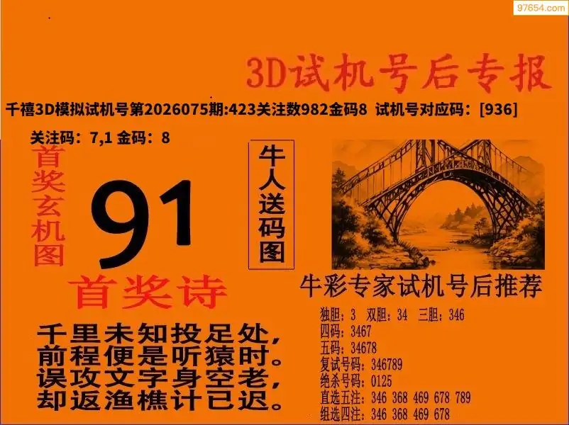 26075期福彩3D试机号后首奖诗