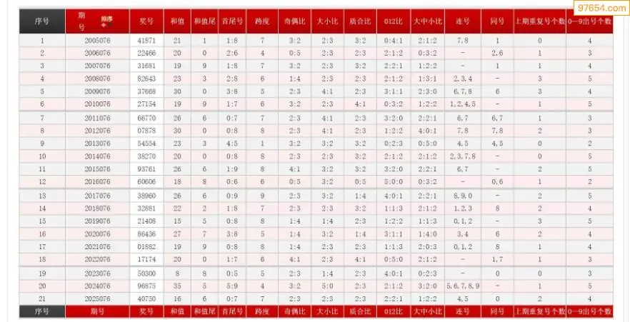076期体彩P5历史同期对比图表+近期走势图分析