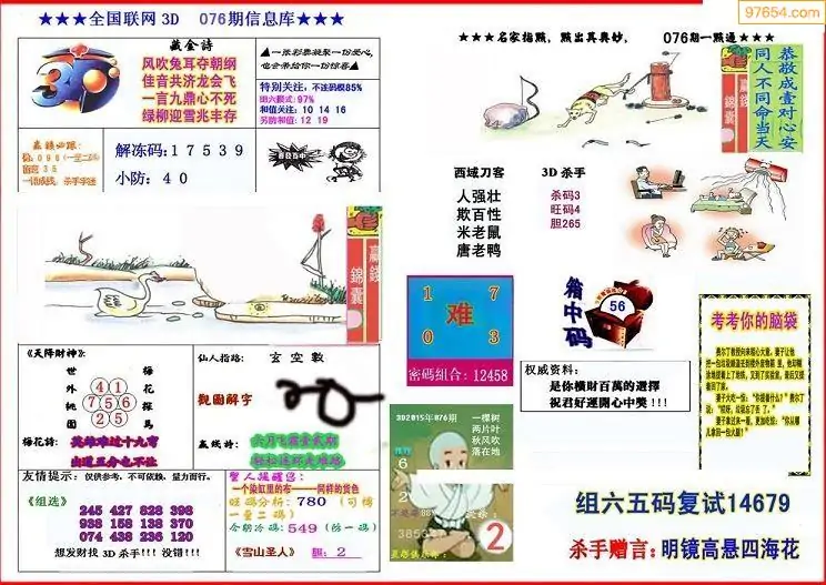 福彩3D076期天牛彩吧套图整合总汇