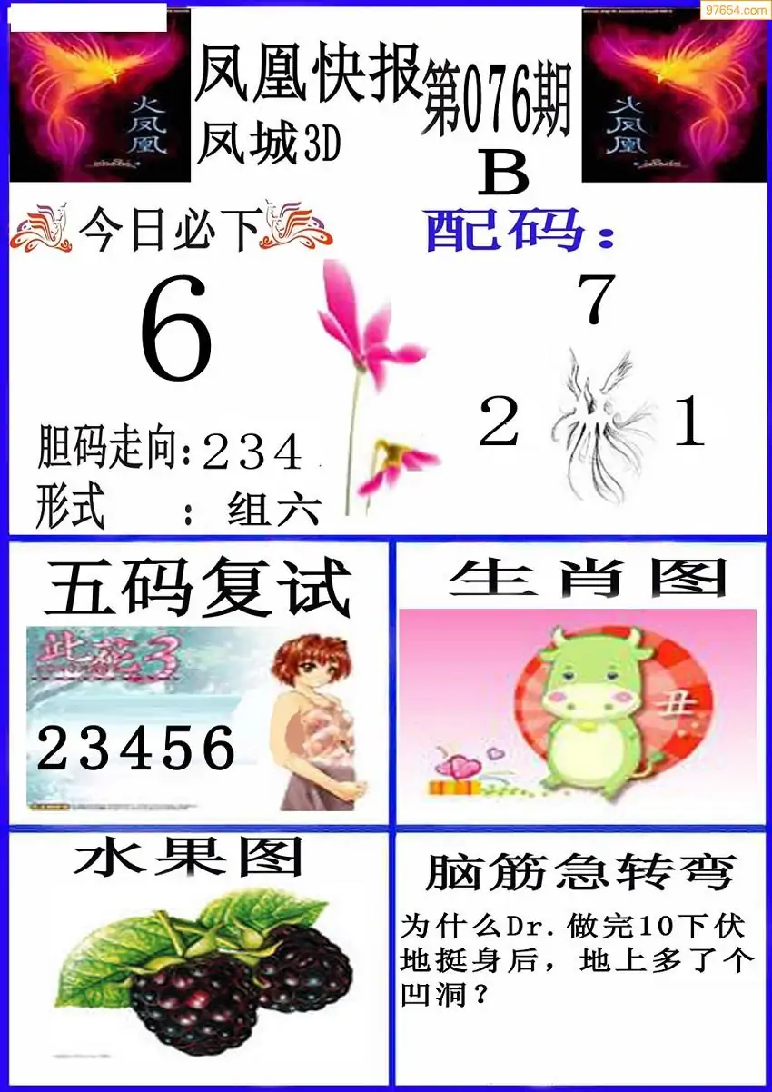 076期3D牛彩预测报+彩吧字谜报