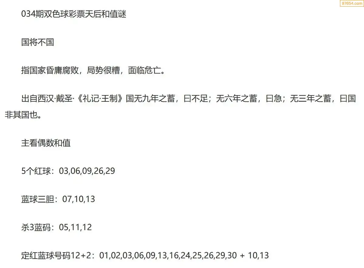 彩票天后双色球26年034期今日和值谜