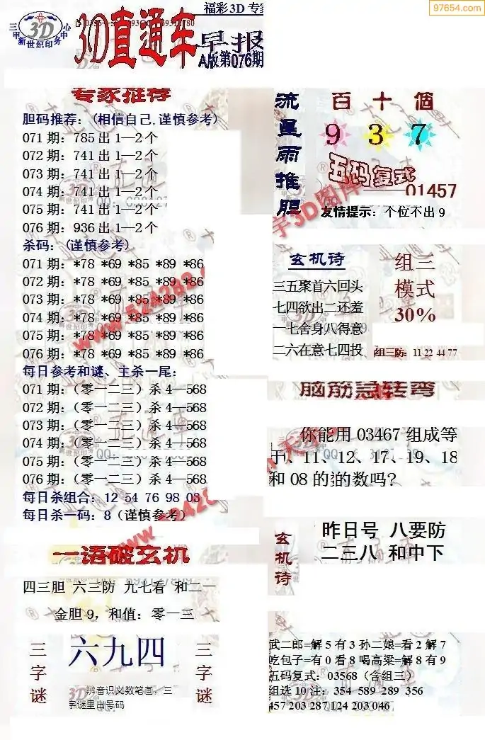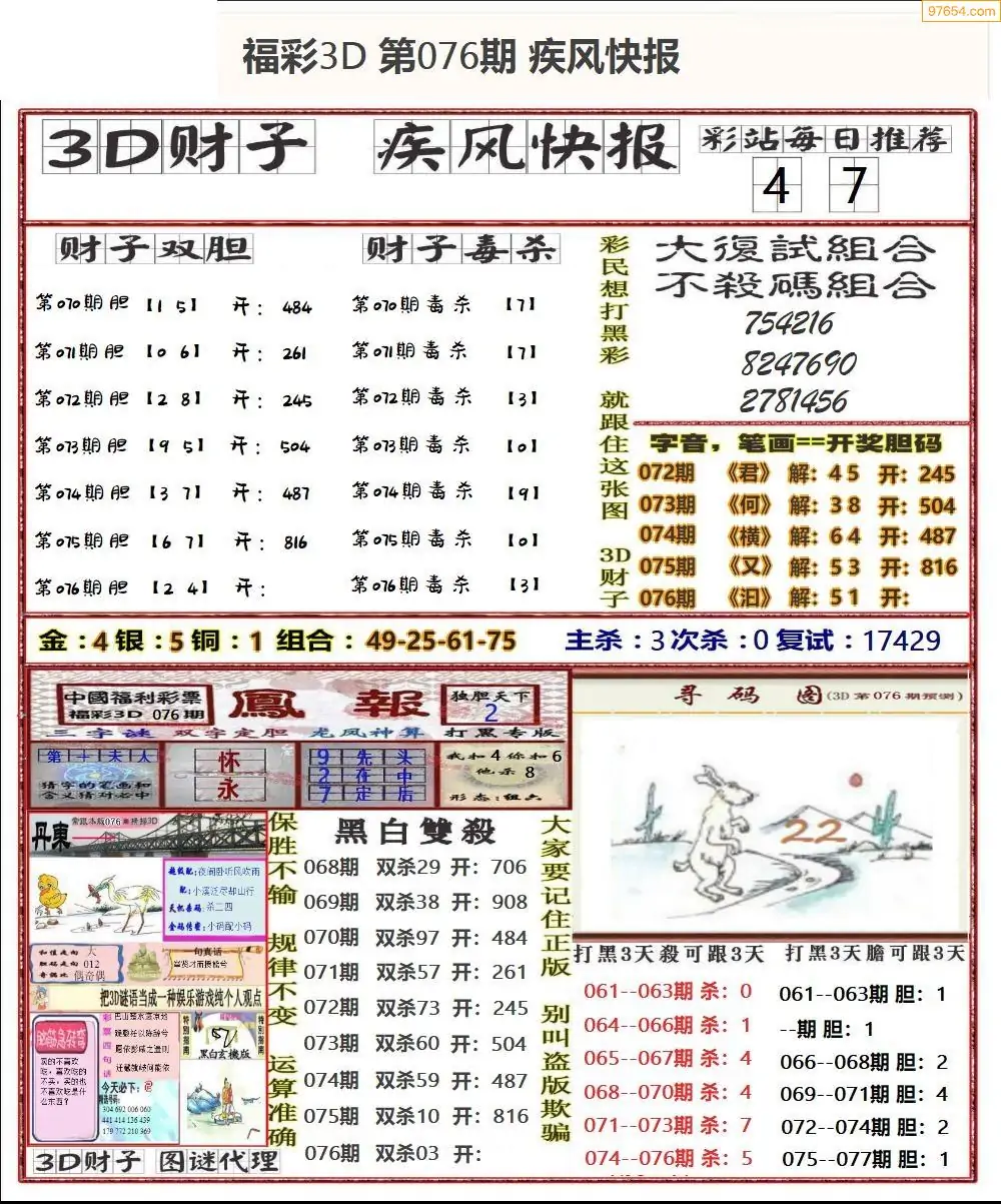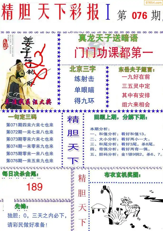 福彩3D076期天牛彩吧套图整合总汇