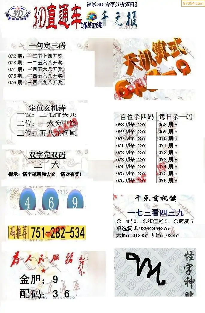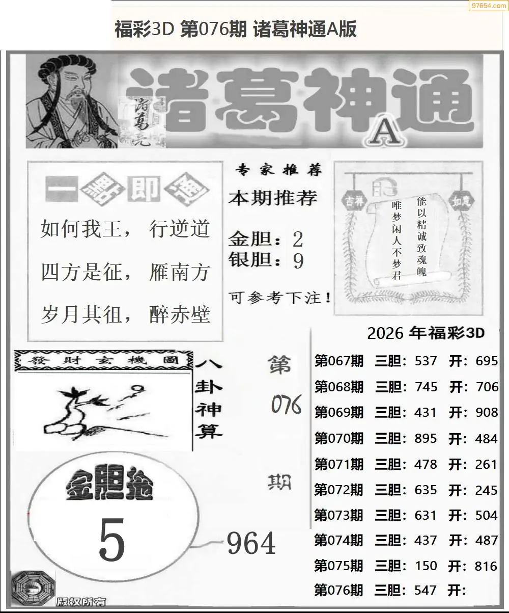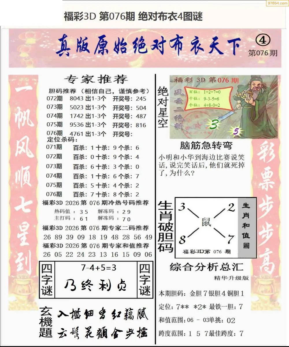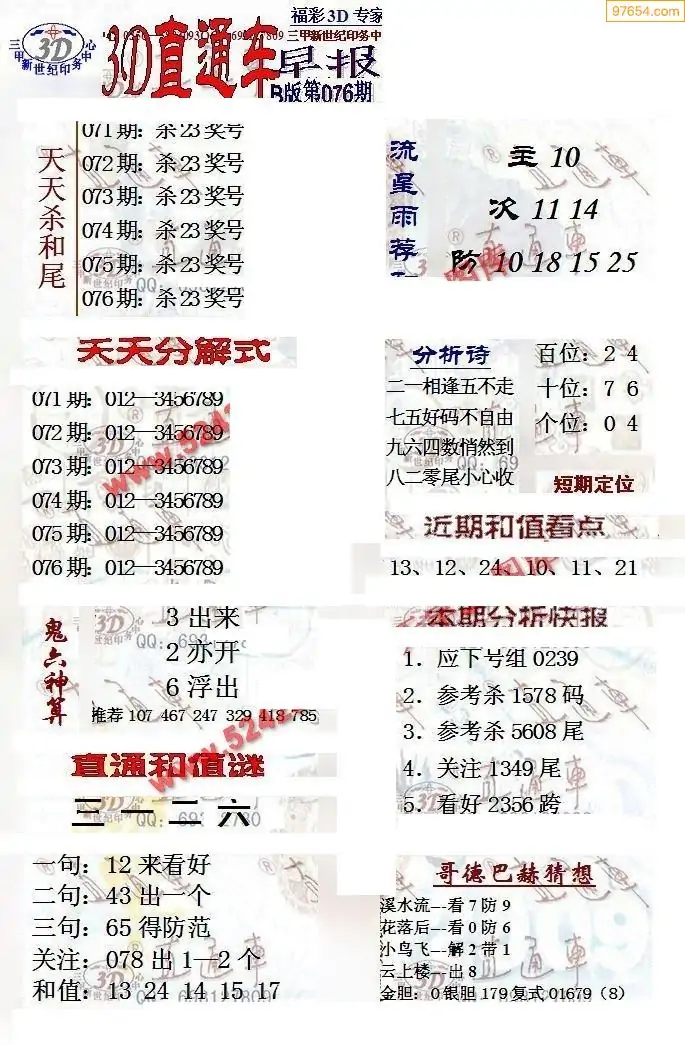 26年076期3d选号彩报图谜画谜