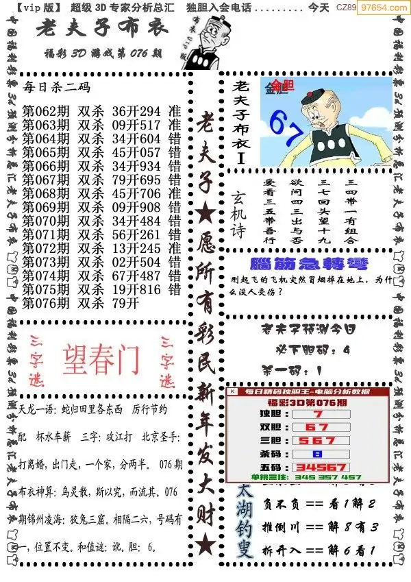 2026076期3D老夫子布衣图12
