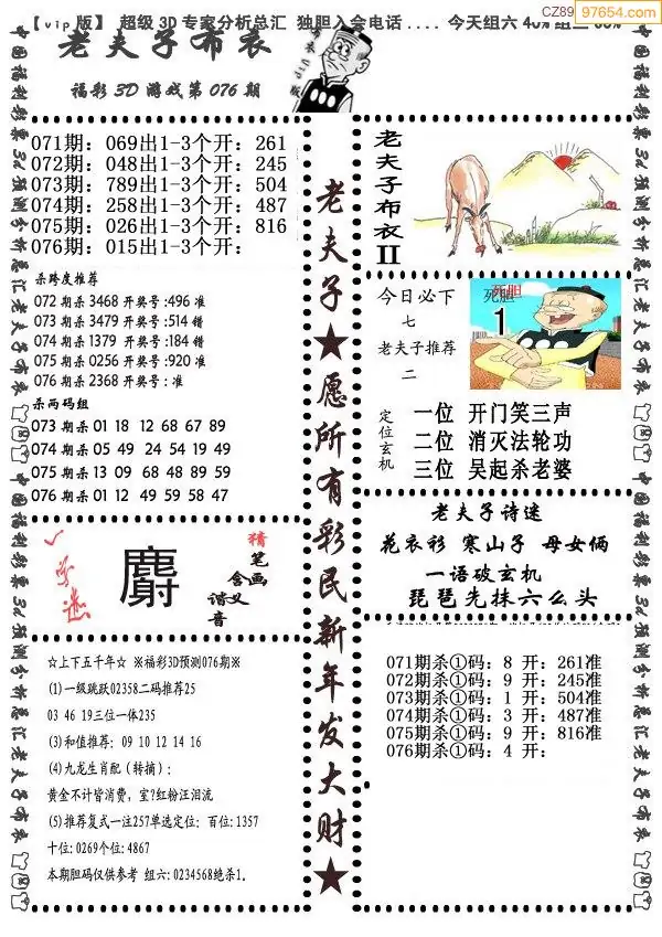 福彩3D077期天牛彩吧套图整合总汇