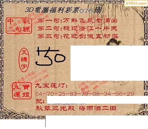 福彩26076期天庚大帝+九宝寻码图_九堡3d彩看图