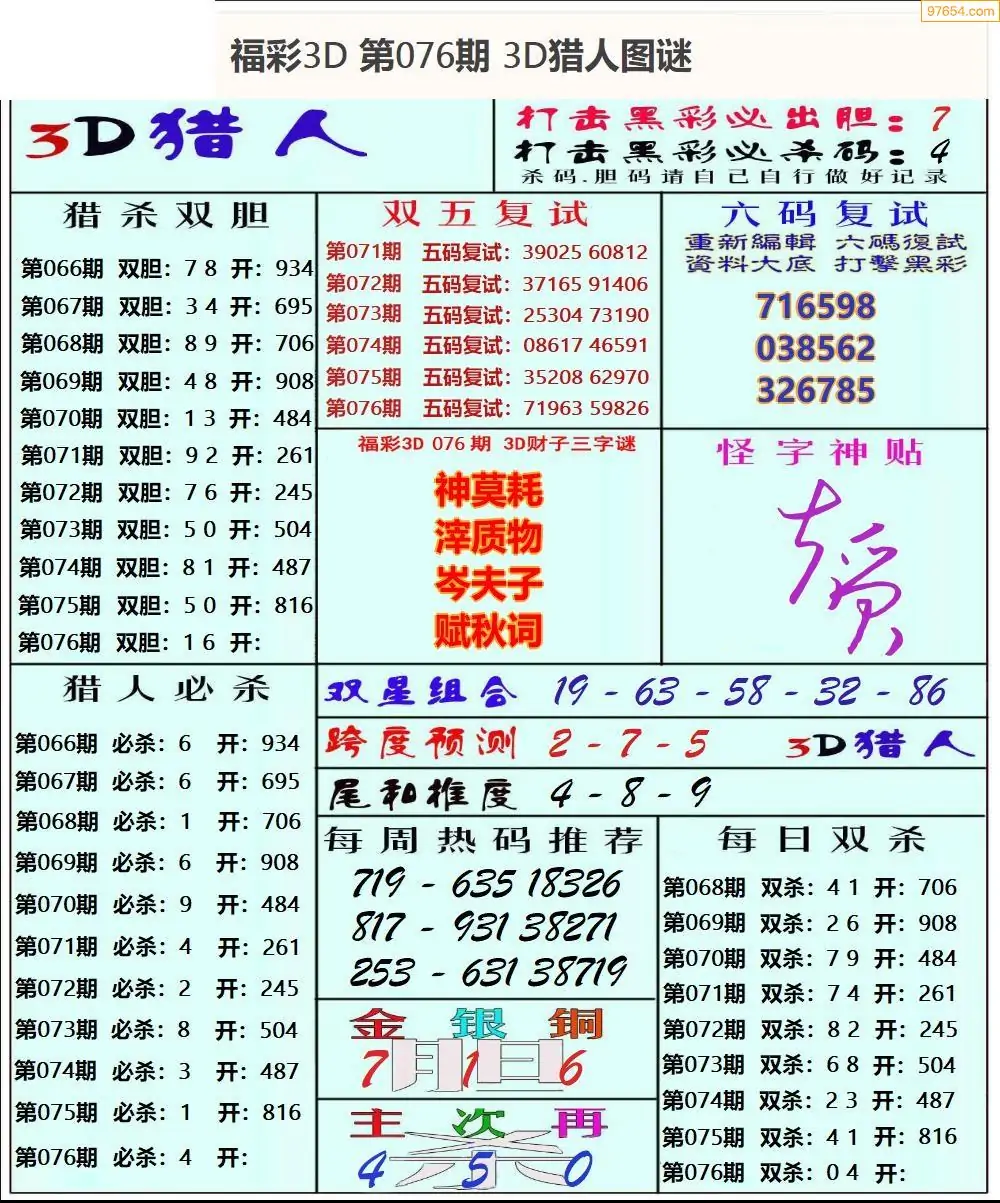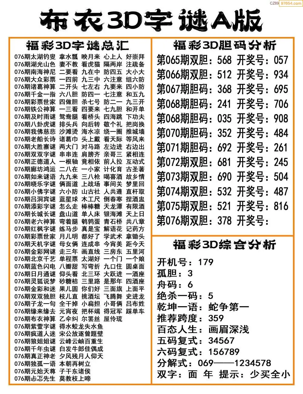 (2)26年076期本期3d图迷汇总_福彩3D图谜总汇图