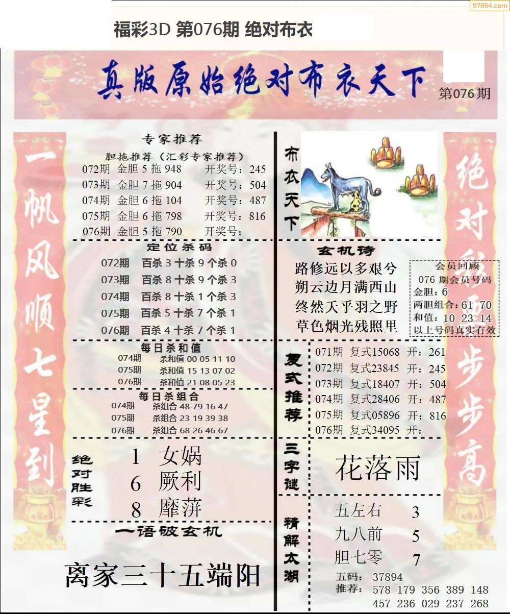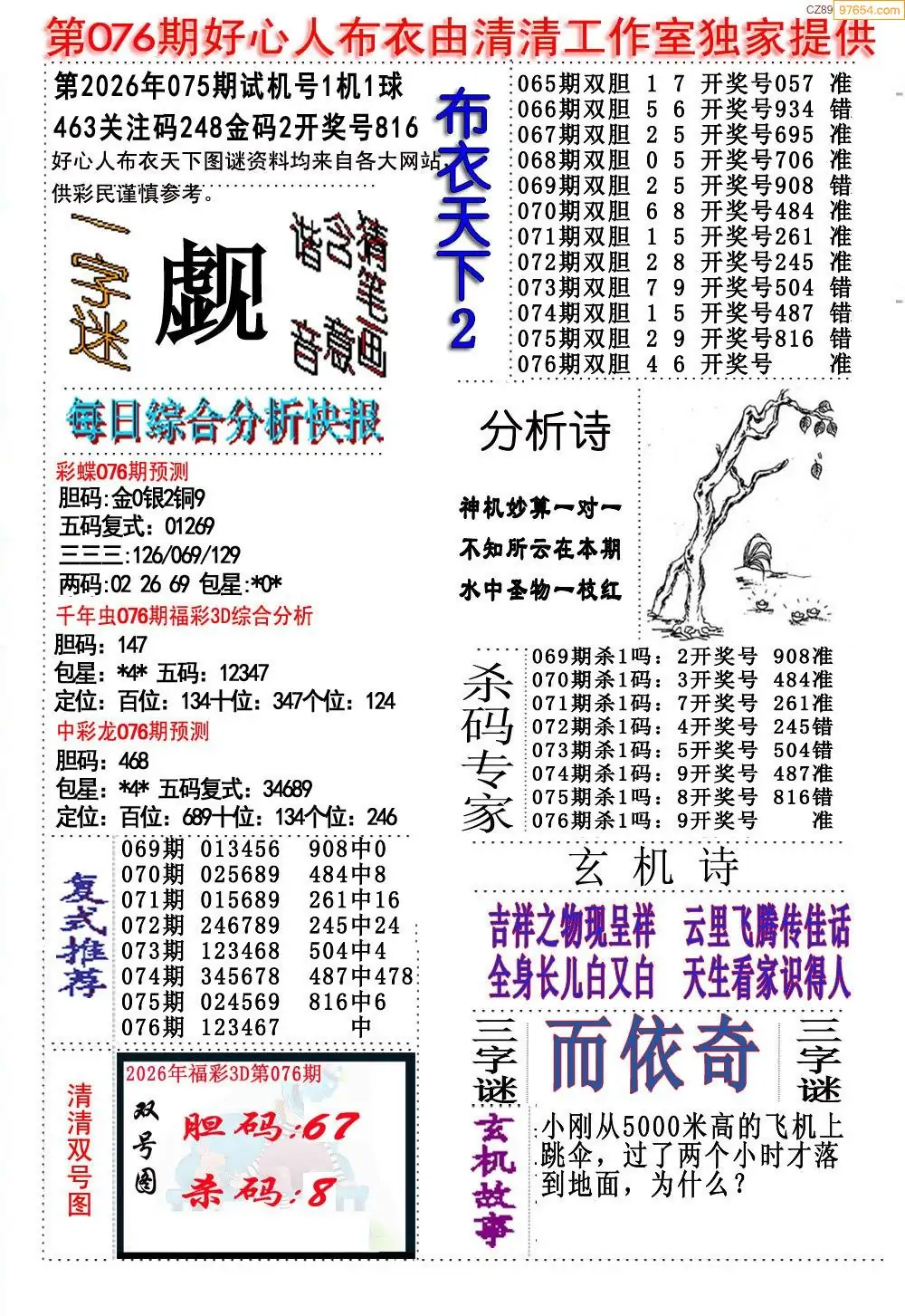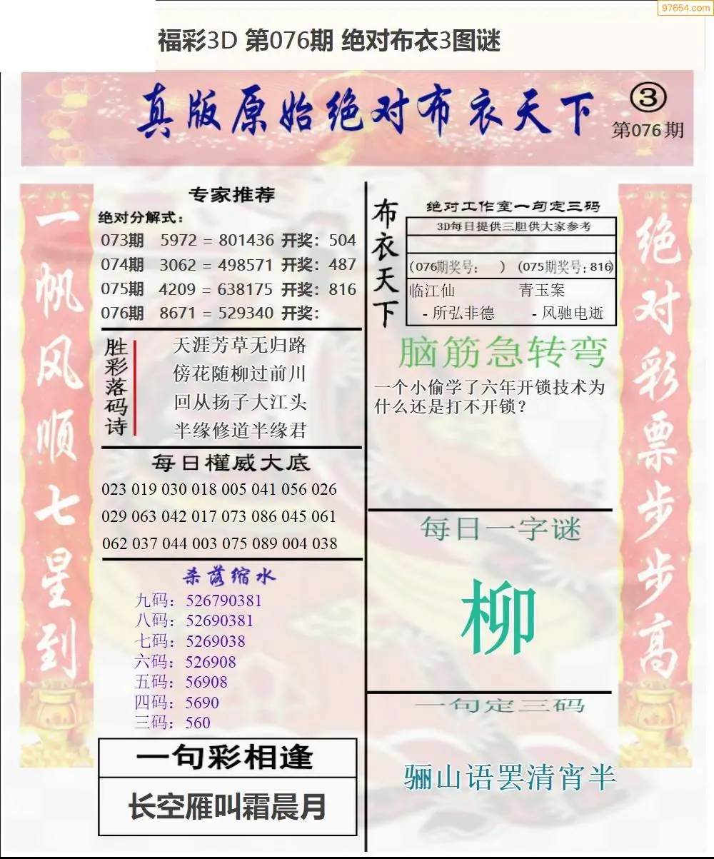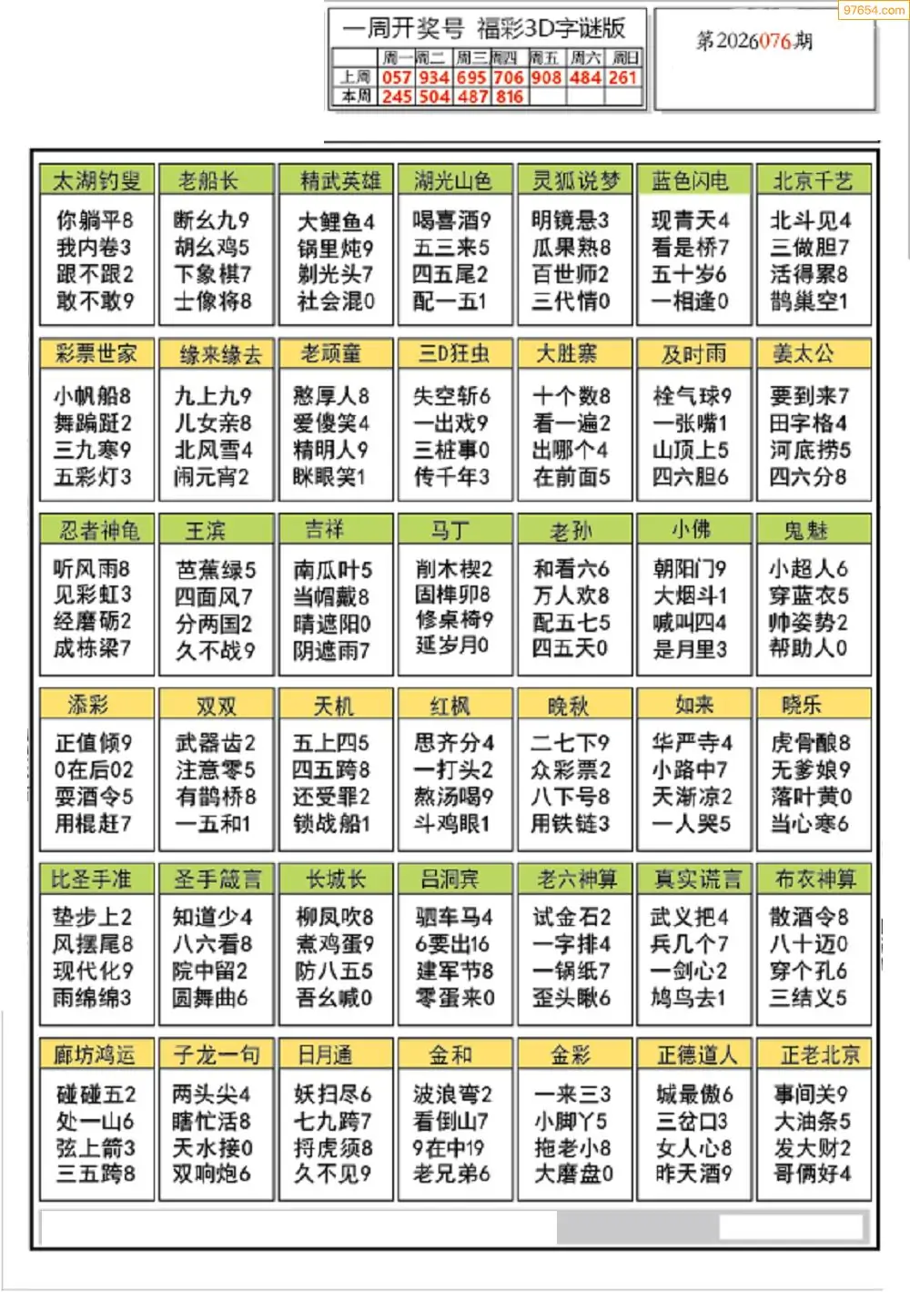 (5)26年076期福彩字谜图谜总汇