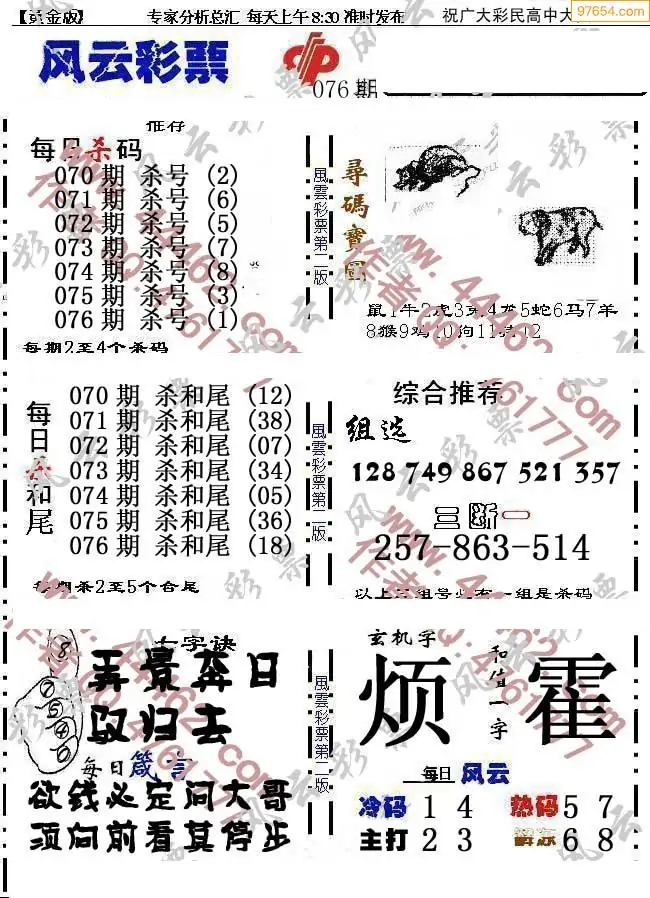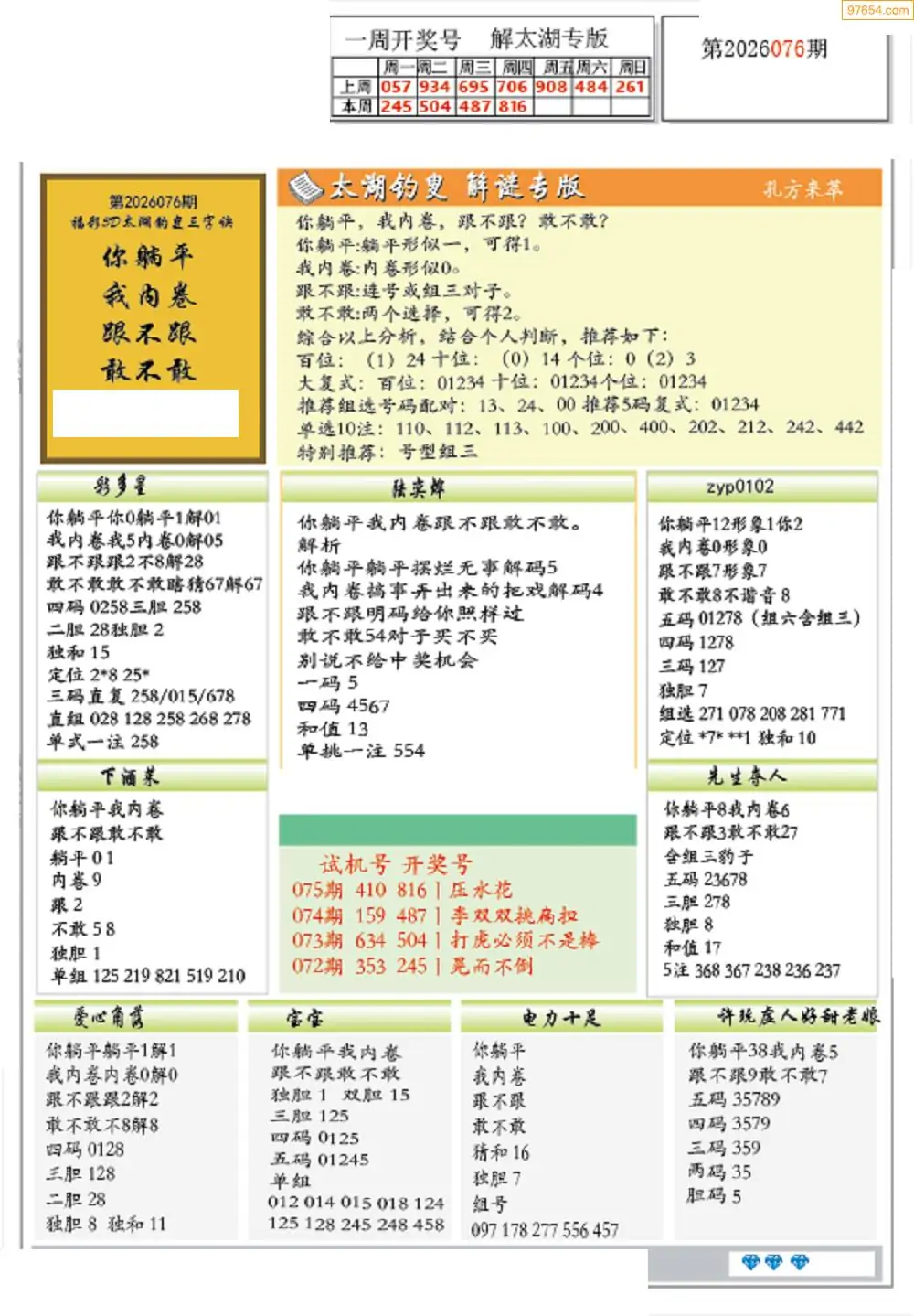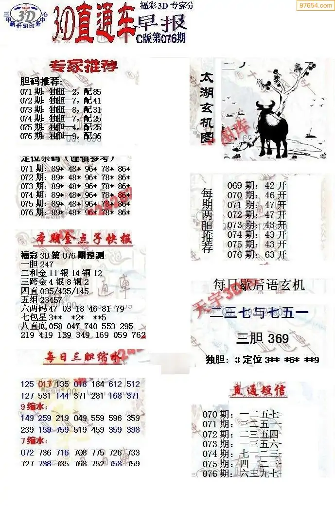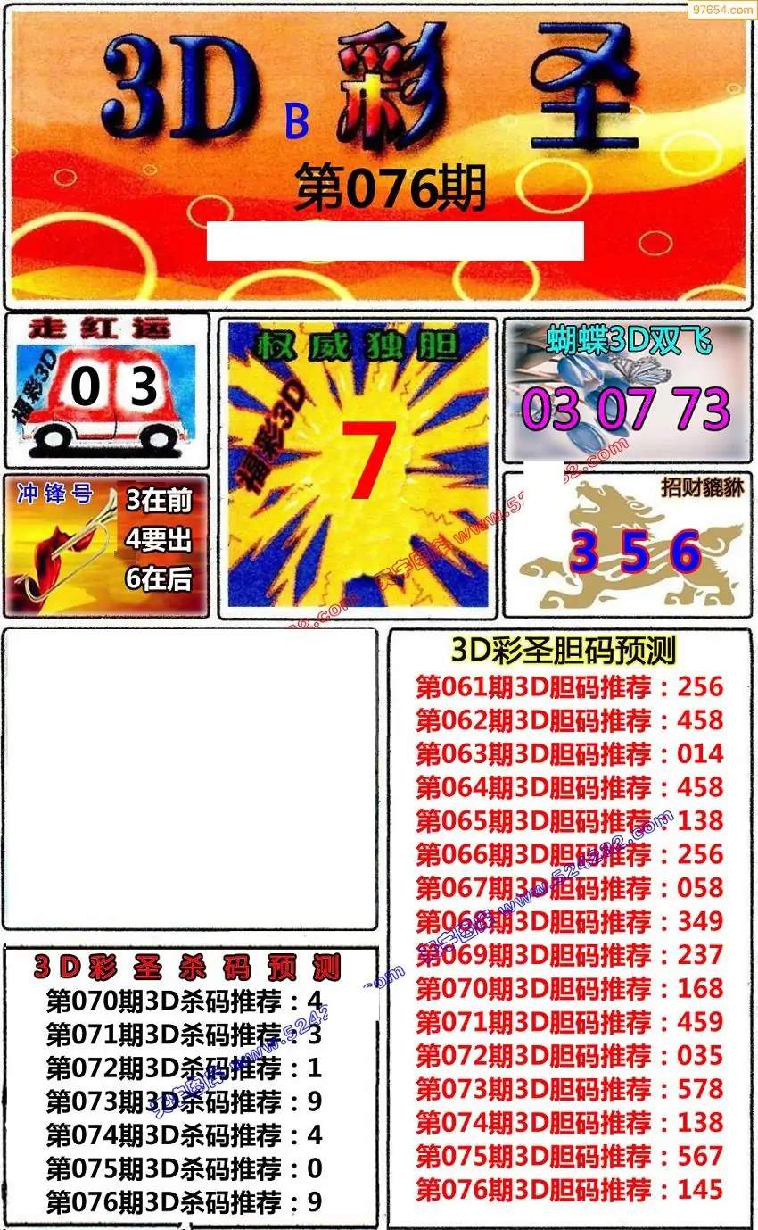 (8)26年076期今日3d各类彩报汇总