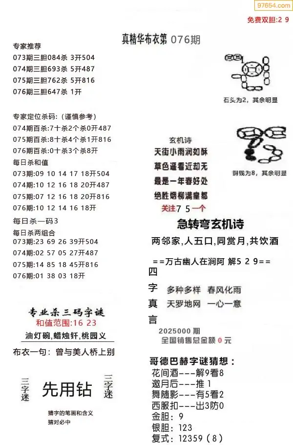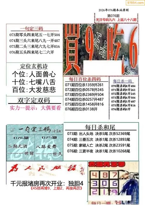 (9)26年075期当期全站杀号定胆图