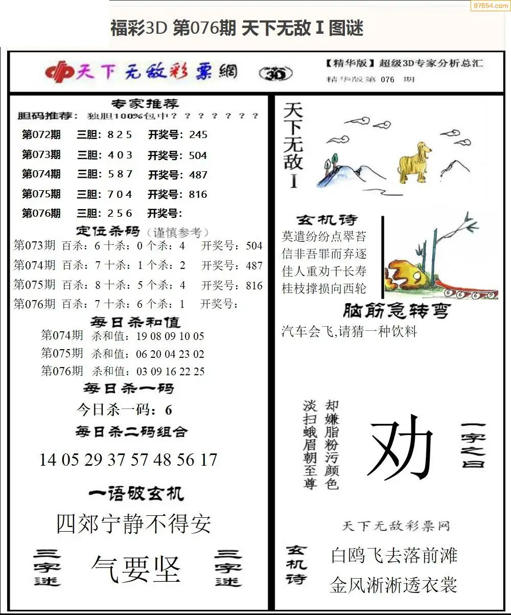 (1)26年076期今日3d图谜总汇