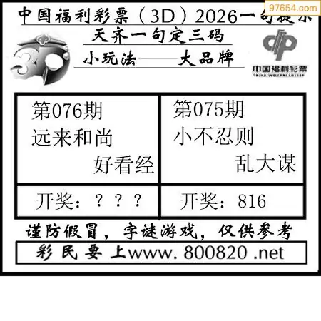 (5)26年076期福彩字谜图谜总汇