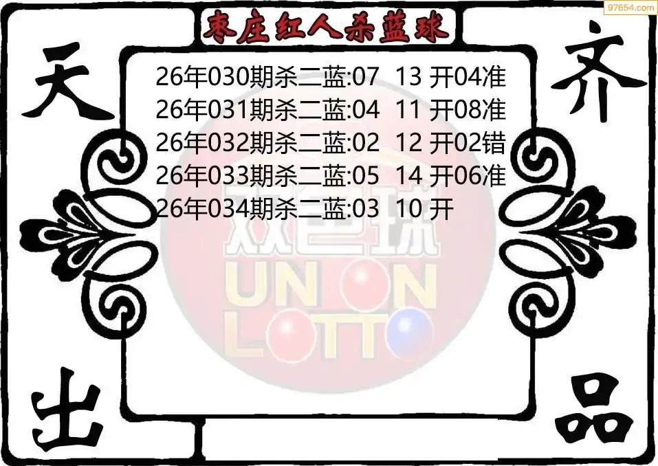 26年双色球034期枣庄红人杀二蓝图迷