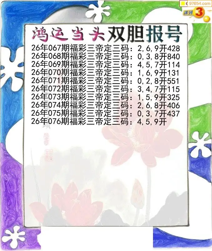 26076期鸿运当头双胆p3报号图