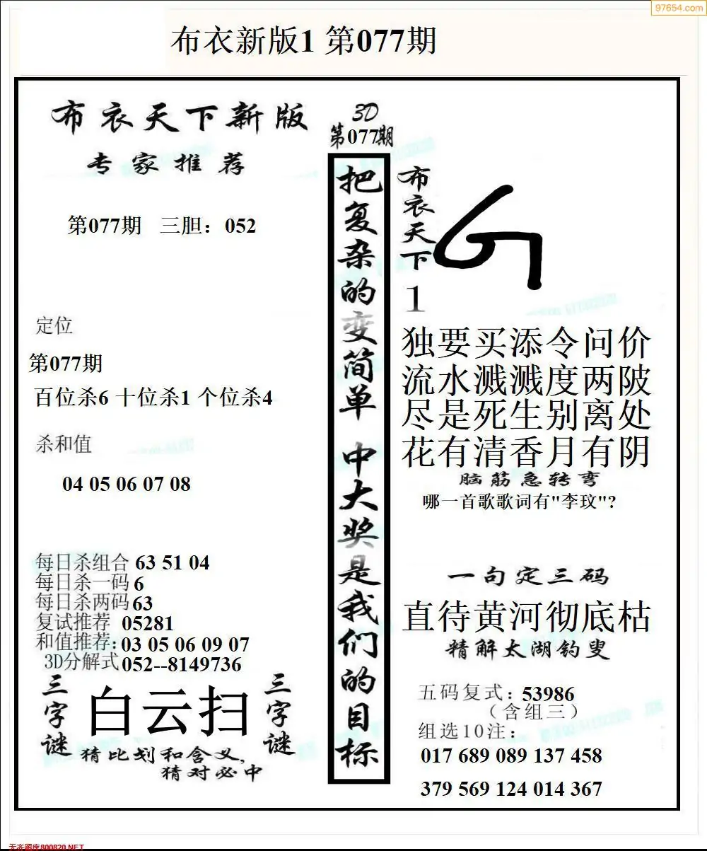 26077期早版布衣天下3D图迷