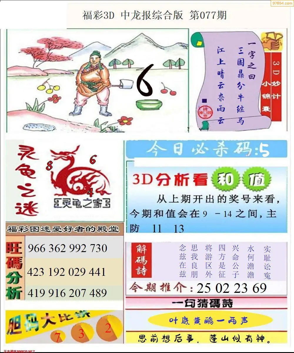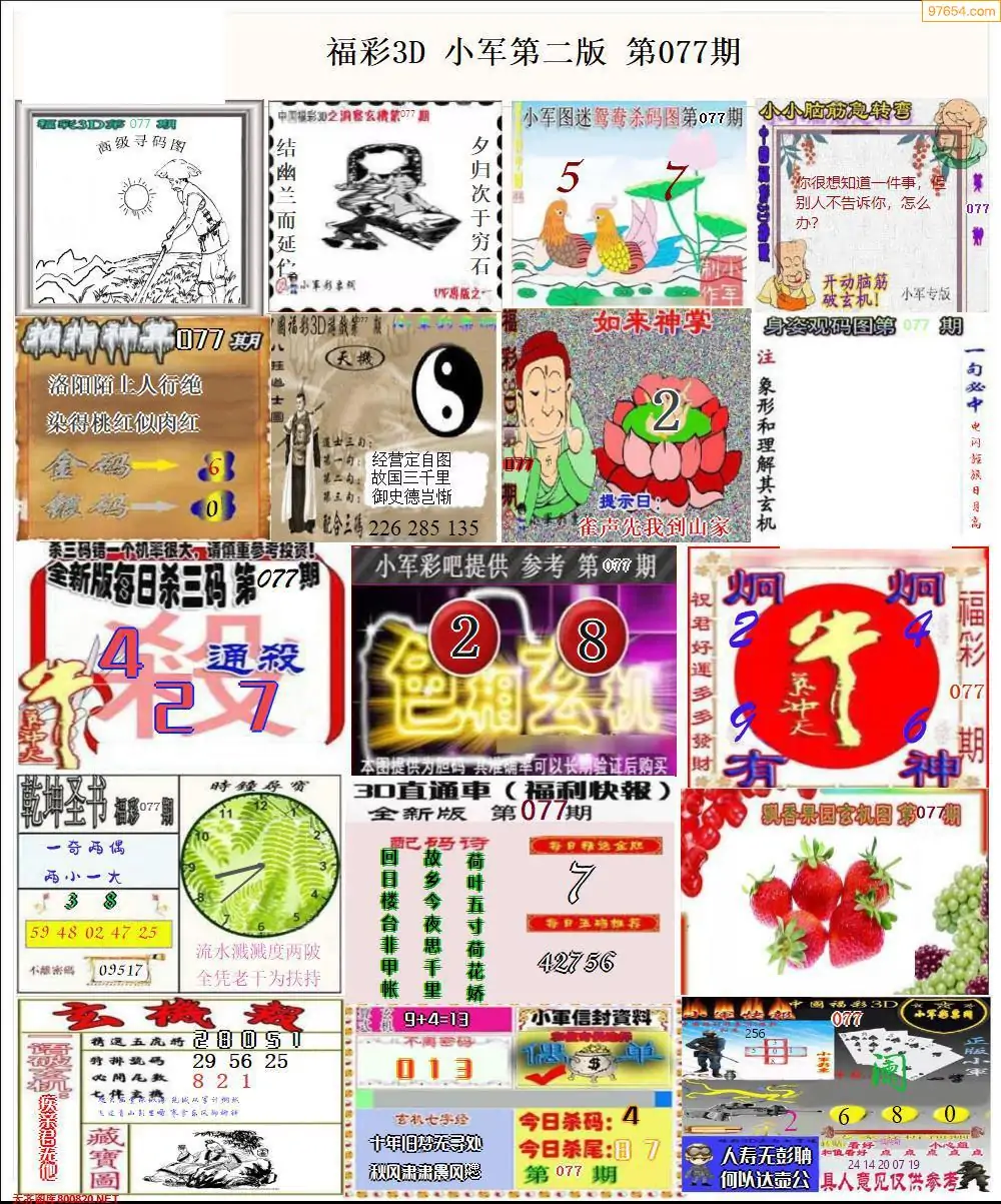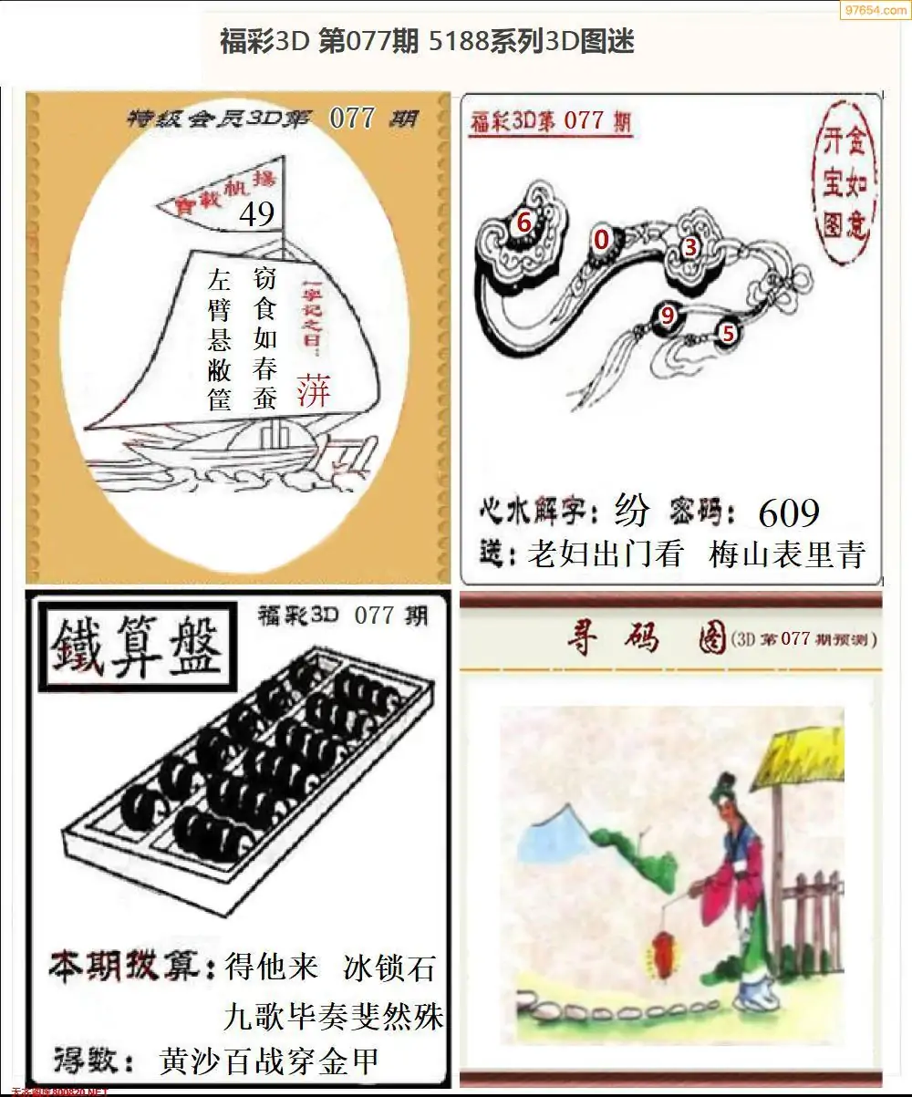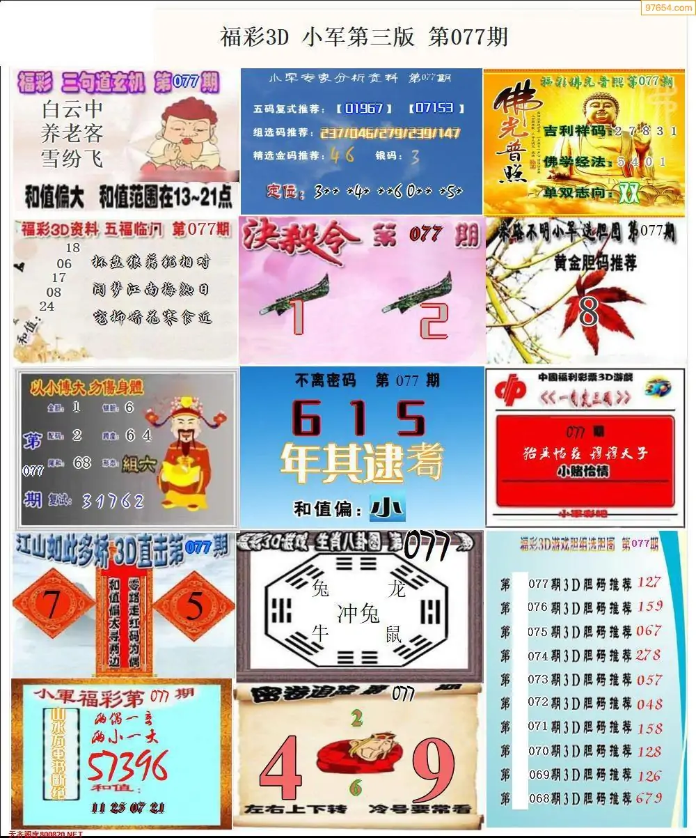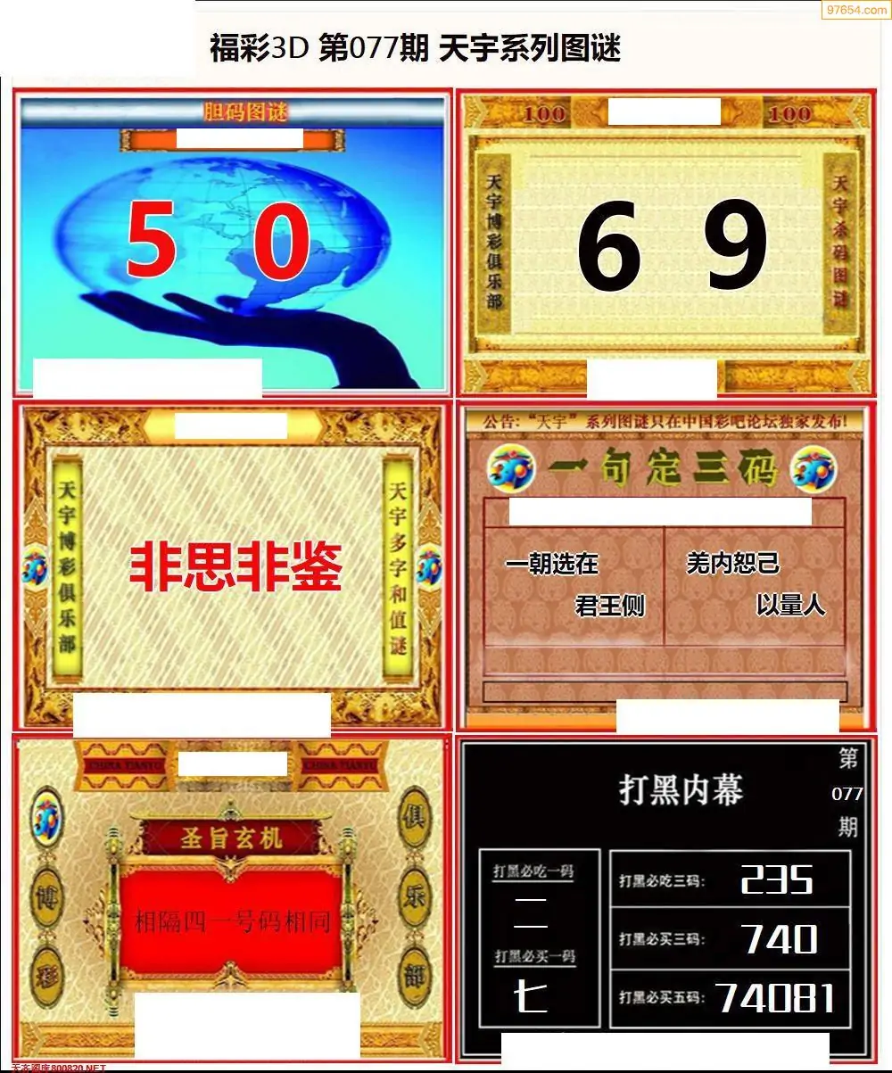 福彩3D077期天牛彩吧套图整合总汇